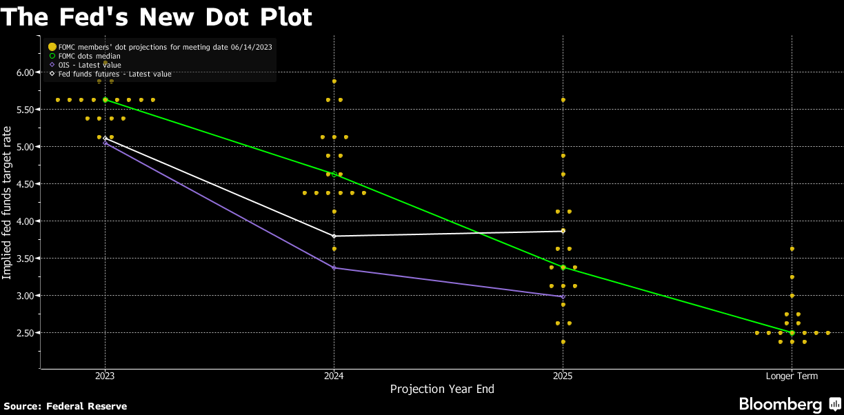 Il presidente Powell ha segnalato che i politici potrebbero potenzialmente aumentare i tassi di interesse a luglio e settembre. Ha ribadito che le previsioni della maggior parte dei responsabili politici mostrano altri due rialzi quest’anno.