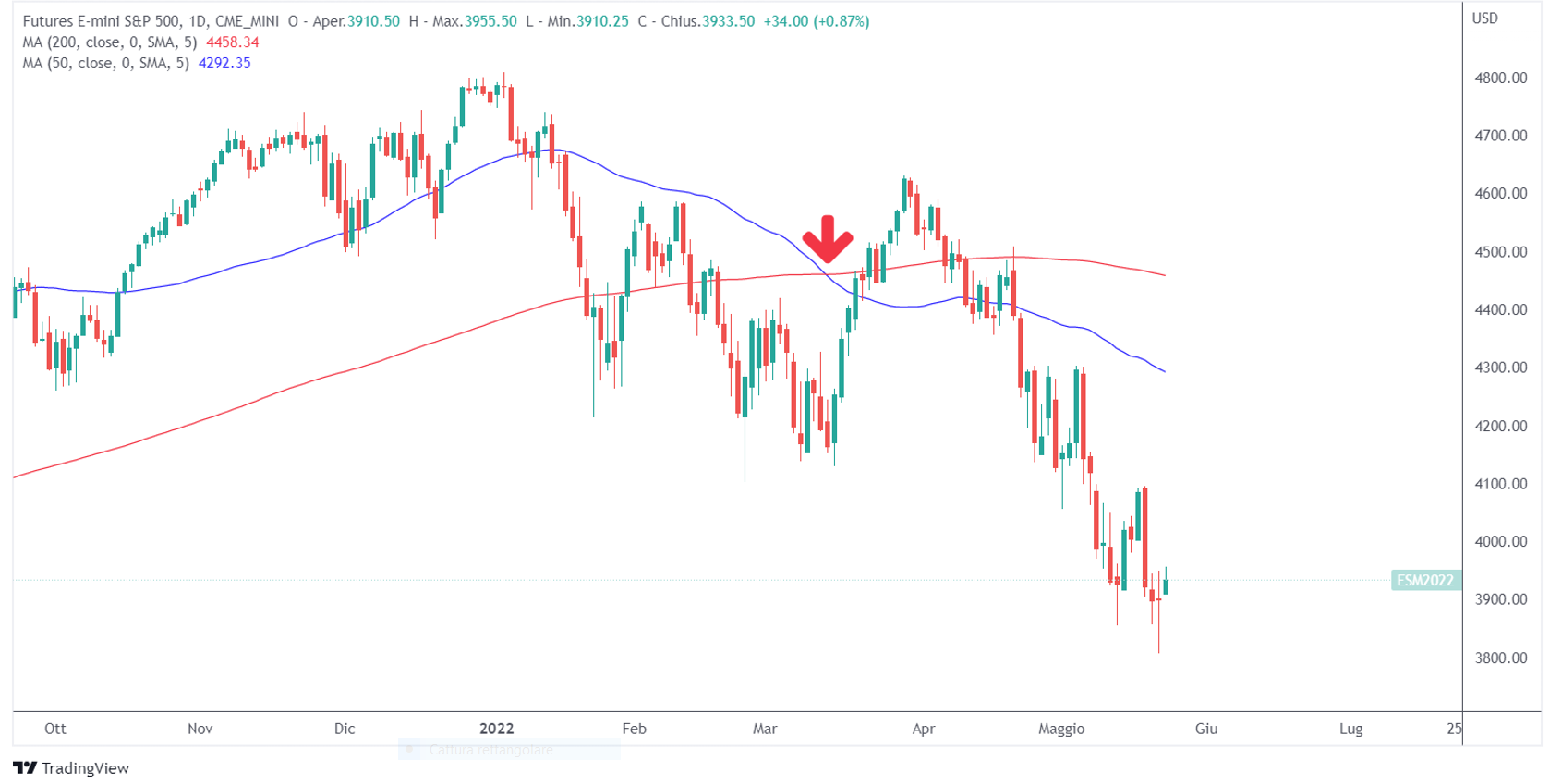 Esso viene interpretato come un segnale di debolezza. I trader prendono invece come un segnale di forza il golden cross, ovvero quando la media a 50 periodi incrocia al rialzo quella a 200.