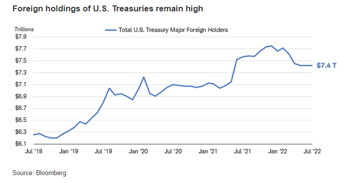 Gli afflussi sono rallentati quest’anno, in gran parte a causa del calo delle partecipazioni da parte della Cina. Tuttavia, la tendenza generale rimane stabile. Inoltre, l’aumento dei rendimenti rende più attraente la detenzione di dollari.