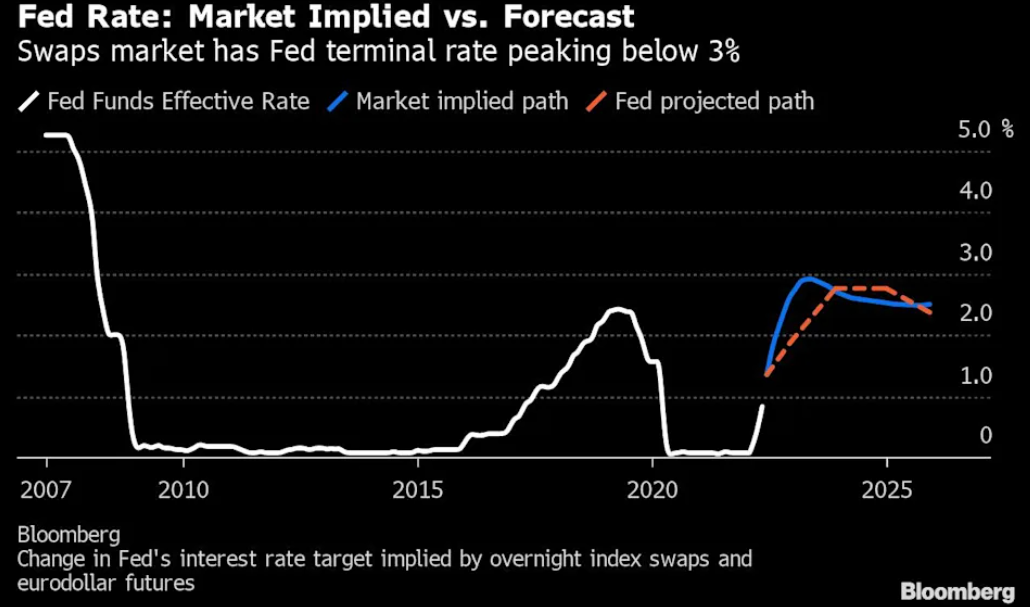Per la successiva riunione di settembre, i contratti hanno prezzato 33 punti base di aumento, ovvero una probabilità del 66% di un aumento di mezzo punto percentuale. Questa aspettativa è in calo rispetto a un picco di oltre 60 punti base prima della riunione della Fed di maggio.