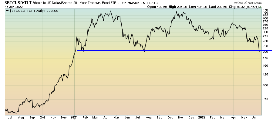 Il rapporto di forza relativa tra Bitcoin e l’S&P500 ha rotto al ribasso…