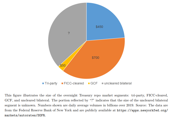 Il bilateral repo è la fonte principale con cui gli hedge fund assumono la leva. Parte delle transazioni che avvengono in questo mercato passano dalla FICC (Fixed Income Clearing Corporation). La parte “uncleared” è difficilmente stimabile. Le autorità e il settore privato stanno compiendo degli sforzi per rendere più visibile questa parte oscura del repo market. La regolamentazione di questo segmento è fondamentale per contrastare episodi di stress finanziario.