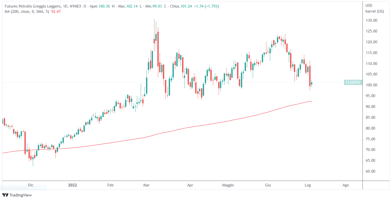 Il prezzo del petrolio si è stabilizzato sotto i 100 $ dopo essere sceso di oltre l’8% nella sessione di martedì, il peggior giorno di negoziazione in quasi tre mesi. I timori di recessione stanno avendo un peso maggiore dell’offerta ristretta. Ci sono preoccupazioni crescenti riguardo a un rallentamento economico globale che alla fine influirà sulla domanda.