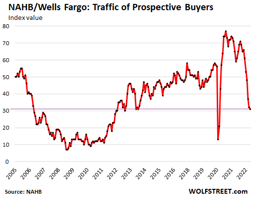 L’indice del traffico dei potenziali acquirenti, che monitora l’interesse ad acquistare una casa, è sceso a 31. A questi prezzi e con i tassi così alti, molti acquirenti si sono ritirati.