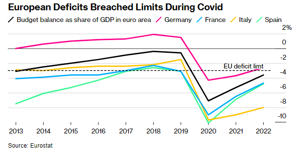 Anche altri stanno cercando di far fronte a deficit gonfiati, in parte il risultato degli stimoli pandemici. Il Regno Unito sta cercando di limitare la spesa e alcuni politici tedeschi vogliono ripristinare un tetto all’indebitamento.