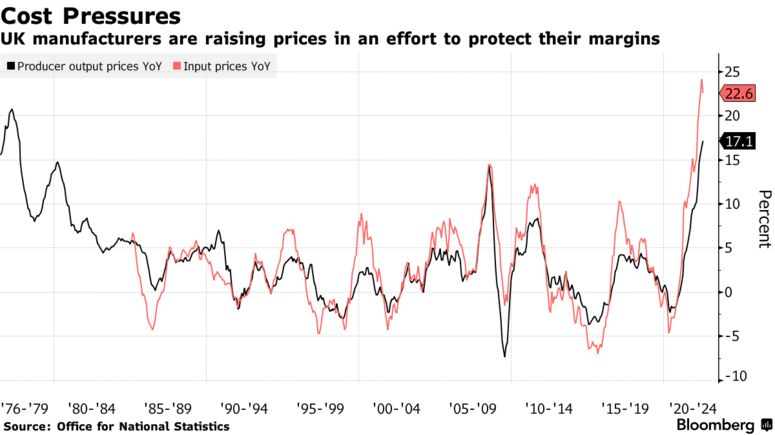 Tuttavia, i prezzi degli input rimangono solo leggermente al di sotto del record registrato a giugno. I prezzi alla produzione sono aumentati dell’1,6% su base mensile e del 17,1% rispetto all’anno precedente, il più grande aumento annuale dal 1977.