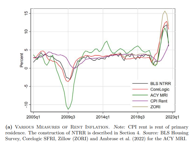 I risultati della Fed di Cleveland mostrano che l’indice dei nuovi inquilini sta ora diminuendo rapidamente, da un picco intorno al 12%. I ricercatori hanno scoperto che i loro dati sui nuovi inquilini tendono ad anticipare di circa un anno le misure delle abitazioni del BLS dell’indice dei prezzi al consumo, mentre per la misura di tutti gli inquilini il divario è di circa un quarto.