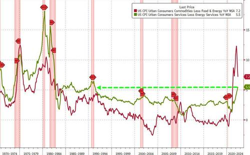 L’inflazione dei beni sta rallentando, ma i costi dei servizi stanno salendo ai massimi del 1991.