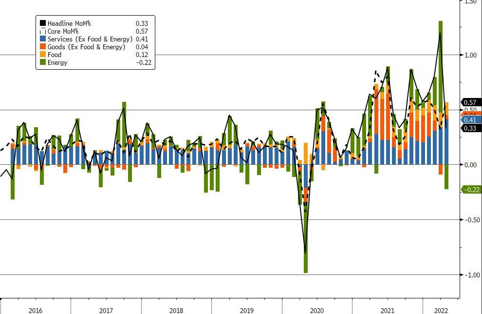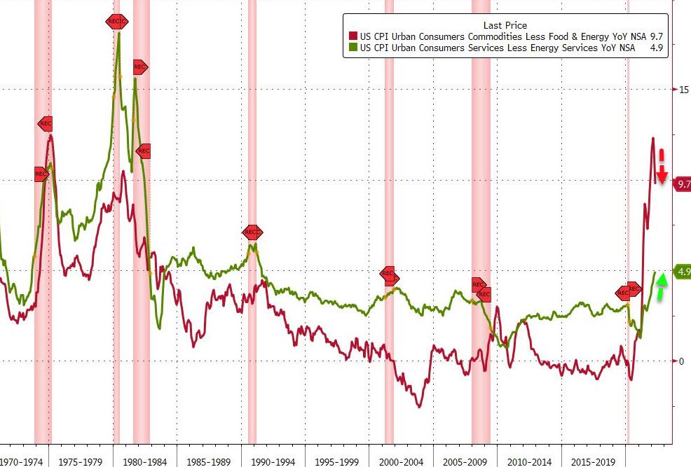 E’ probabile che l’inflazione dei servizi manterrà il CPI elevato mentre I prezzi dei beni dovrebbero continuare a sgonfiarsi.