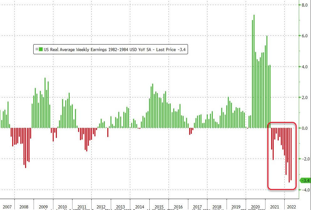 Infine la cosa più preoccupante è che i salari reali sono diminuiti per il 13° mese consecutivo.