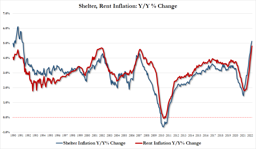 L’inflazione dello shelter di aprile è aumentata del 5,14% YoY, dal 5% di marzo. Gli affitti sono aumentati del 4,82%, il livello più alto da febbraio 1991.