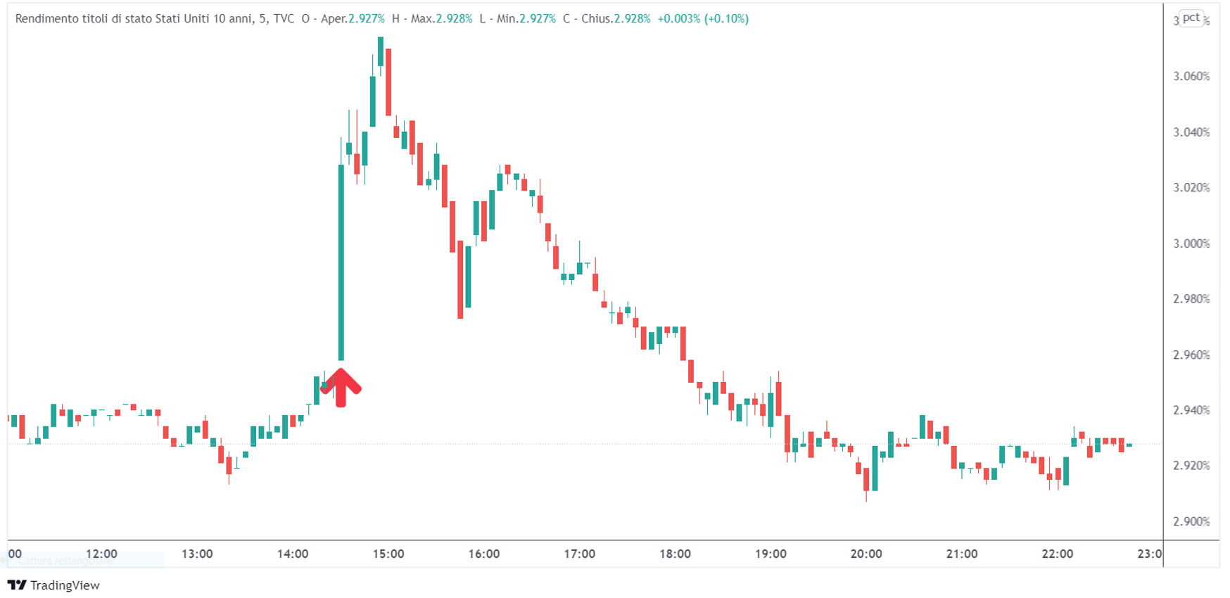 I rendimenti obbligazionari sono esplosi al rialzo, guidati dalle brevi scadenze. Come per gli indici azionari, i movimenti iniziali sono stati interamente recuperati. Il decennale si è inizialmente portato sopra il 3% per poi chiudere la sessione intorno al 2,9%.