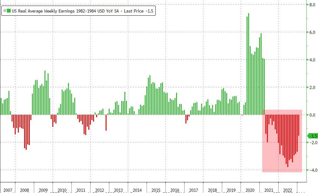 Mentre un forte mercato del lavoro ha sostenuto la crescita dei salari negli ultimi mesi, l’inflazione ha eroso quei guadagni all’inizio dell’anno. Un rapporto separato martedì ha mostrato che le retribuzioni orarie medie aggiustate all’inflazione sono diminuite dello 0,2% rispetto al mese precedente, il calo maggiore da giugno. La retribuzione è diminuita dell’1,8% rispetto all’anno precedente.