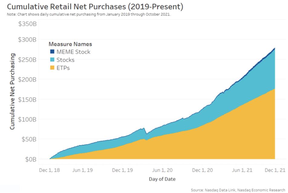 Gli investitori al dettaglio sono stati acquirenti netti di azioni ed ETF, aggiungendo afflussi di quasi $ 300 miliardi da gennaio 2019.