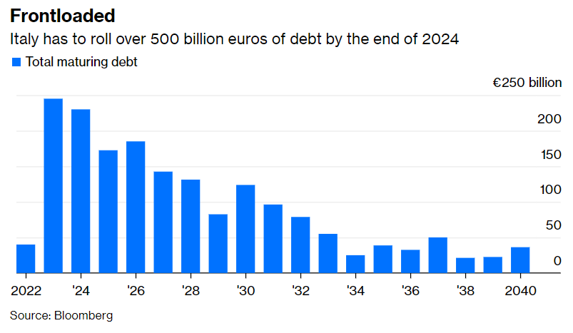 Molte cose devono accadere a novembre, compresa la creazione di un nuovo governo e la riconvocazione del Parlamento. Subito dopo arriva il bilancio annuale che deve passare all’esame della Commissione Europea prima della fine dell’anno. Questo processo potrebbe essere ancora più teso del solito quest’anno a causa di un disavanzo di bilancio più ampio e di un aumento dell’indebitamento. Con 245 miliardi di euro (238 miliardi di dollari) di titoli di Stato che dovranno essere rifinanziati l’anno prossimo e 230 miliardi di euro nel 2024, c’è poco spazio per gli errori.