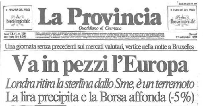 Nella giornata del Mercoledì nero, il 16 Settembre 1992, la Borsa di Milano, con tutti gli indici in caduta libera (-5% dell’indice a fine giornata), perse un valore stimato di 6700 miliardi di lire (~3,35 miliardi di euro). Il magnate finanziario che aveva venduto allo scoperto la LIRA ne trae un grande profitto. Ma nessun fondo di investimento da solo avrebbe avuto il potere di mettere in ginocchio un grande Paese come l’Italia senza un sostegno politico esterno. Nonostante lo sgretolamento del sistema di potere della Prima Repubblica, Tangentopoli, l’assalto mafioso al cuore dello Stato e le conseguenze economico-finanziarie del Trattato di Maastricht, che spinsero il governo di Giuliano Amato a imporre un prelievo forzoso sui conti correnti nazionali, nessun indizio lasciava presagire un crollo della lira prima dell’arrivo di notizie problematiche dalla Germania.