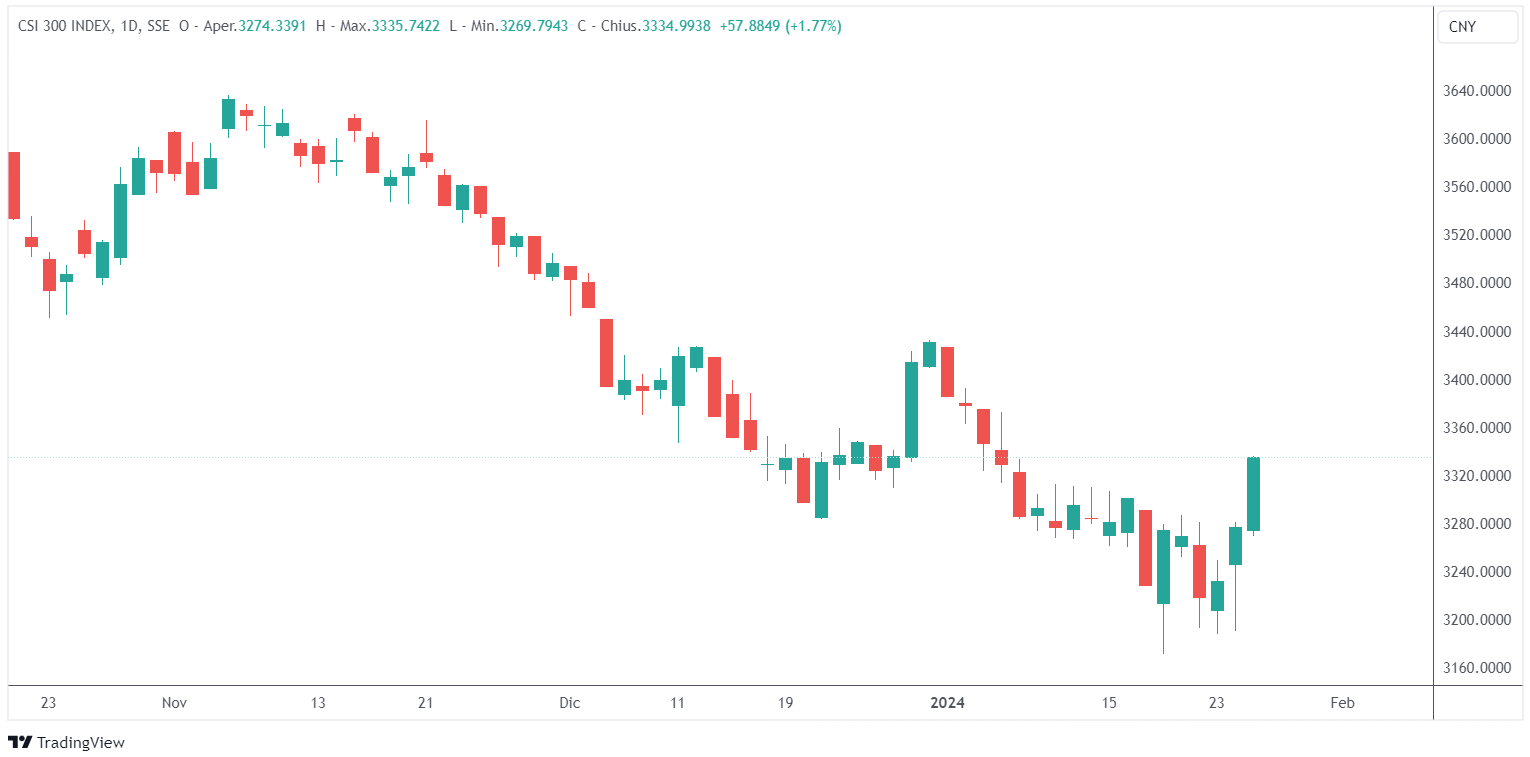 L’abbassamento di questo rapporto libera liquidità, in modo che le banche possano concedere prestiti ai clienti e acquistare più obbligazioni per sostenere la crescita economica. La banca centrale ha tagliato il RRR due volte nel 2023, con l’ultima riduzione a settembre.