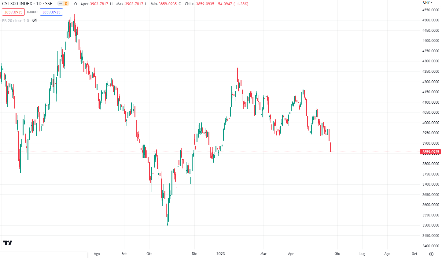 Sui mercati finanziari, l’indice cinese si è rimangiato gran parte dell’impulso rialzista di Dicembre 2022 e anche se ci sono i primi segnali di rimbalzo sembra che gli investitori non si fidino ancora ciecamente dei dati macro economici.