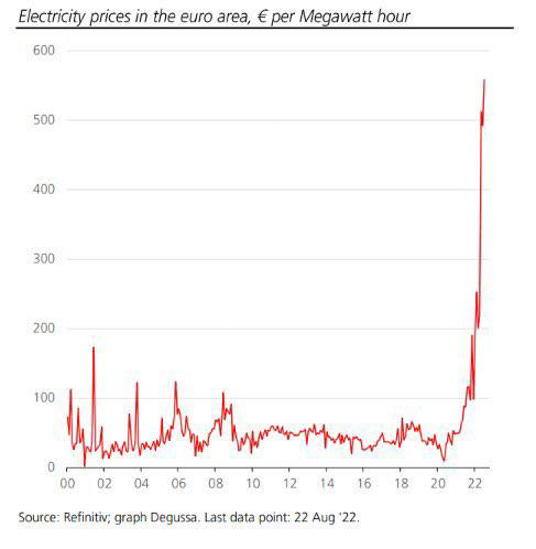 I prezzi dell’elettricità sono aumentati di quasi 10 volte nell’ultimo anno, alimentando l’inflazione e l’onere economico per imprese e famiglie.