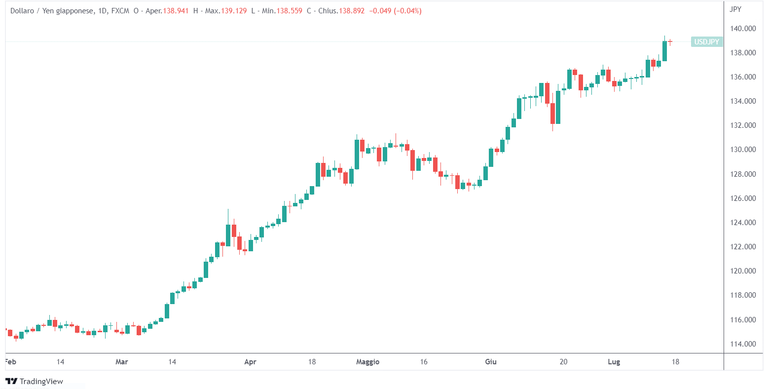 A febbraio 2021, ci volevano $ 1,20 per acquistare € 1. Adesso le due valute hanno raggiunto la parità per la prima volta dal 2002. L’euro non è di certo l’unica valuta che ha perso valore nei confronti del dollaro. Il tasso di cambio USD/JPY, ad esempio, è sempre più vicino alla soglia dei 140, un livello che non si vede da 24 anni.