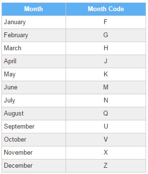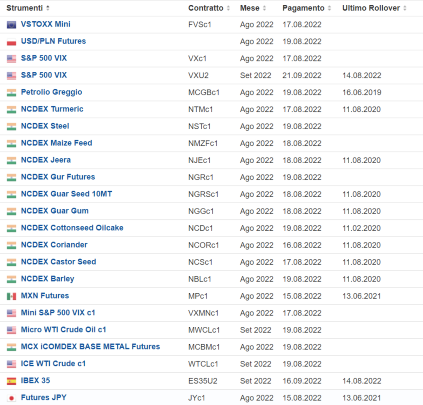 Nella colonna “contratto” le prime 2/3 lettere identificano il sottostante (materia prima, indice ecc.), la 3° lettera identifica il mese di scadenza.