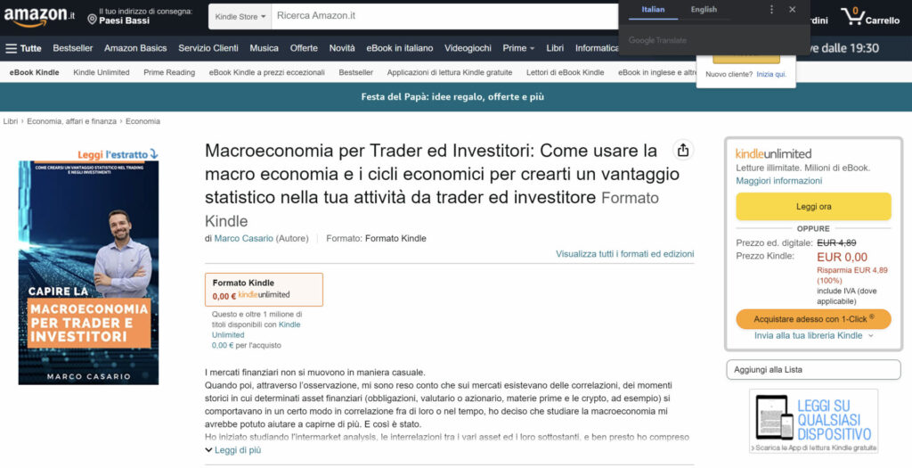Finalmente è uscito il mio libro “Macroeconomia per Trader ed Investitori” su Amazon e ho deciso di rilasciarlo gratuitamente (la promozione è fino a domenica 12 Marzo):