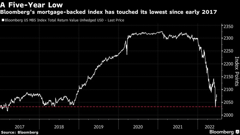 Gli aumenti dei tassi della Fed hanno già avuto un effetto drammatico sul mercato dei mutui. L’indice di Bloomberg delle obbligazioni garantite da ipoteca ha restituito tutti i guadagni degli ultimi cinque anni.
