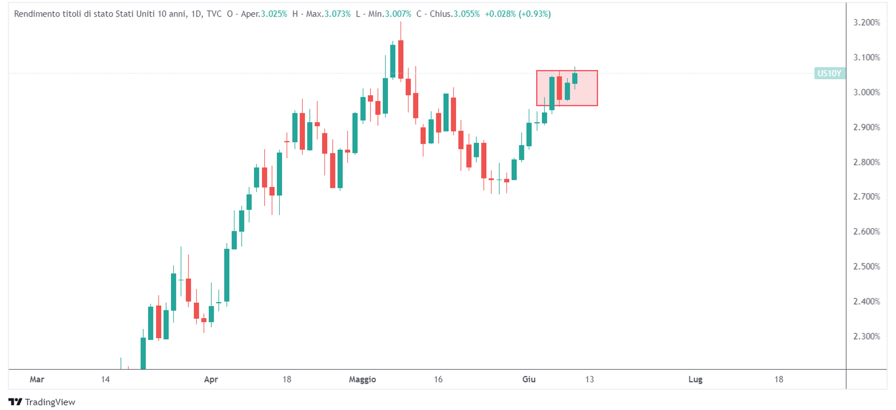 A maggio, i timori legati alla crescita hanno sostenuto le obbligazioni, che sono riuscite a registrare il primo mese in positivo da novembre dello scorso anno. I rendimenti del decennale sono scesi a un minimo del 2,7% da un massimo del 3,2%. Adesso il benchmark viene scambiato in un intervallo più ristretto intorno al 3%.