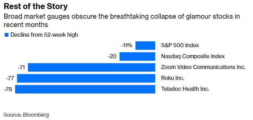 Gli indici di mercato oscurano il bear market delle glamour stock