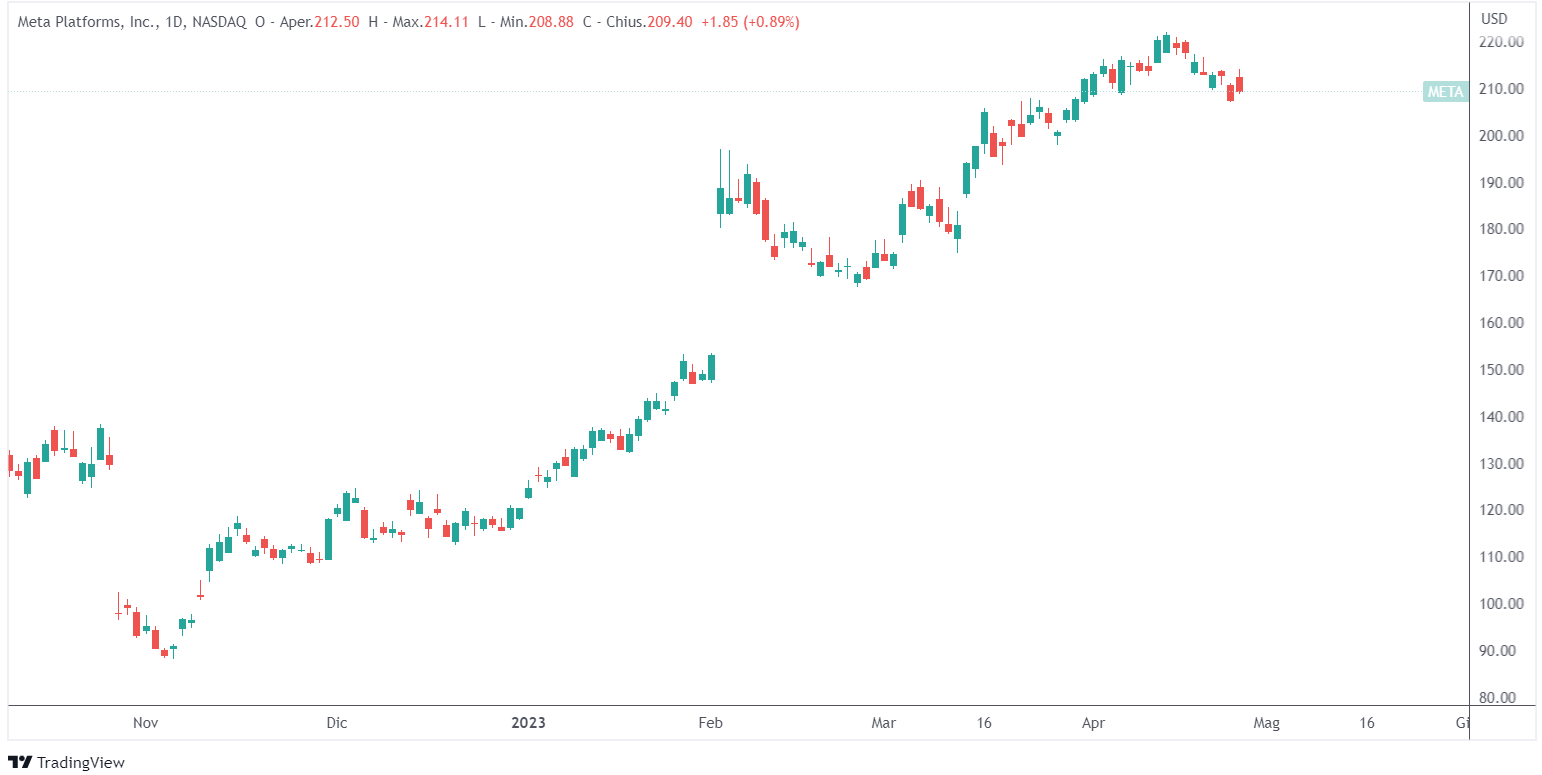 Il titolo è salito del 74% quest’anno fino alla chiusura di mercoledì, recuperando il calo del 64% dell’anno scorso, il peggiore mai registrato. Dopo aver battuto le stime degli utili del primo trimestre, le azioni di Meta hanno guadagnato oltre il 12% nel trading after-market.