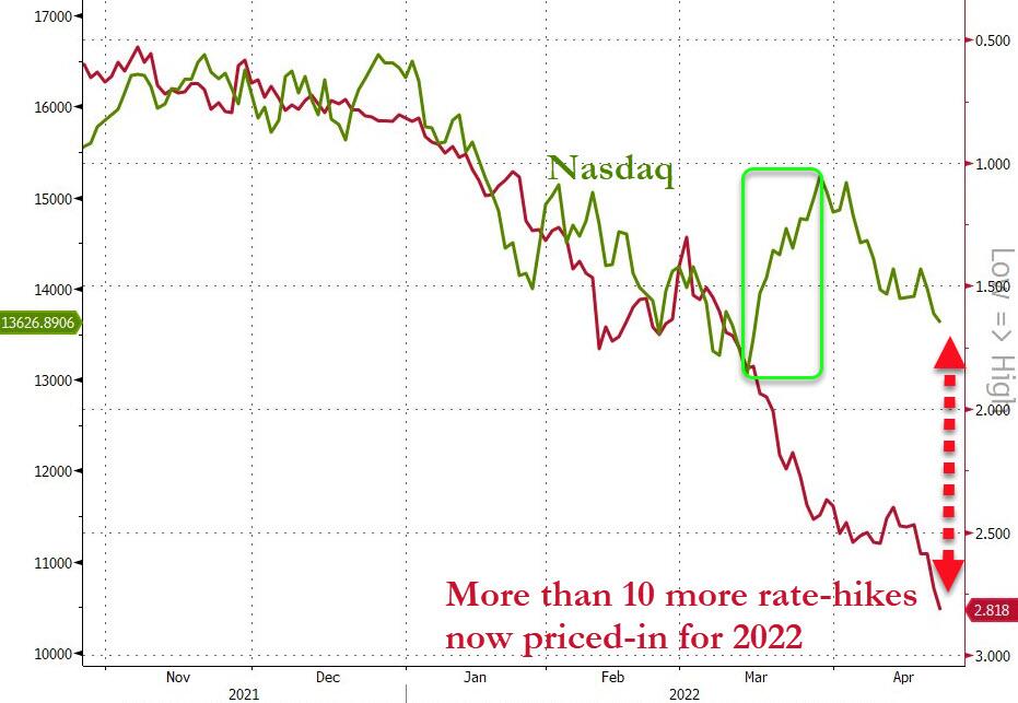 L’indice viene da tre settimane consecutive di perdite ed è sulla buona strada per registrare la peggiore performance mensile dal 2008. Le prospettive di un ciclo aggressivo di aumento dei tassi della Fed hanno pesato sui rendimenti dell’indice e sulle valutazioni delle aziende tecnologiche.