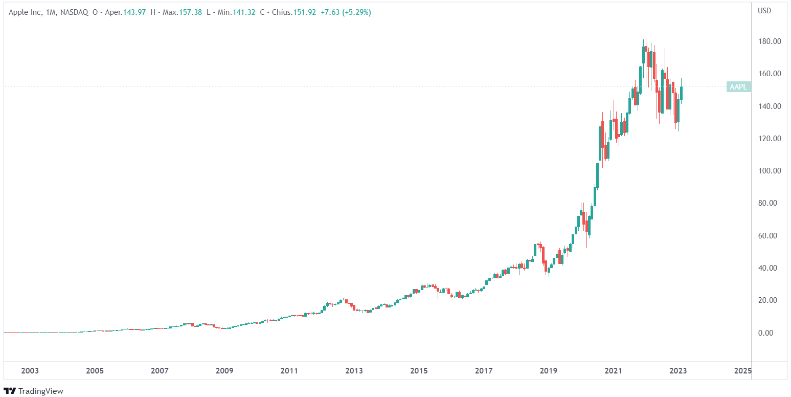 La crescita di aziende tecnologiche come Amazon, Apple e Microsoft è stata enorme. Ad esempio, il prezzo delle azioni di Amazon è passato da circa 15 dollari nel 2003 a oltre 3.000 dollari nel 2021, mentre il prezzo delle azioni di Apple è passato da circa 5 dollari nel 2003 a oltre 120 dollari nel 2021.