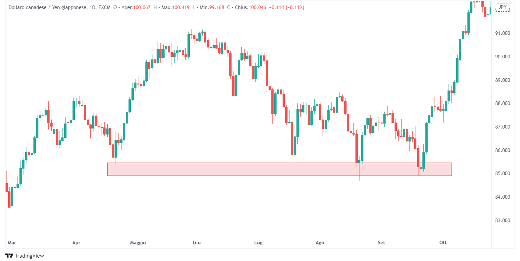 Il supporto è un livello in cui la domanda tende ad aumentare, spingendo al rialzo il prezzo. Tradizionalmente viene insegnato che il supporto è un prezzo preciso ma con il tempo si sta passando di più all’idea che esso sia rappresentato da un range di prezzi.