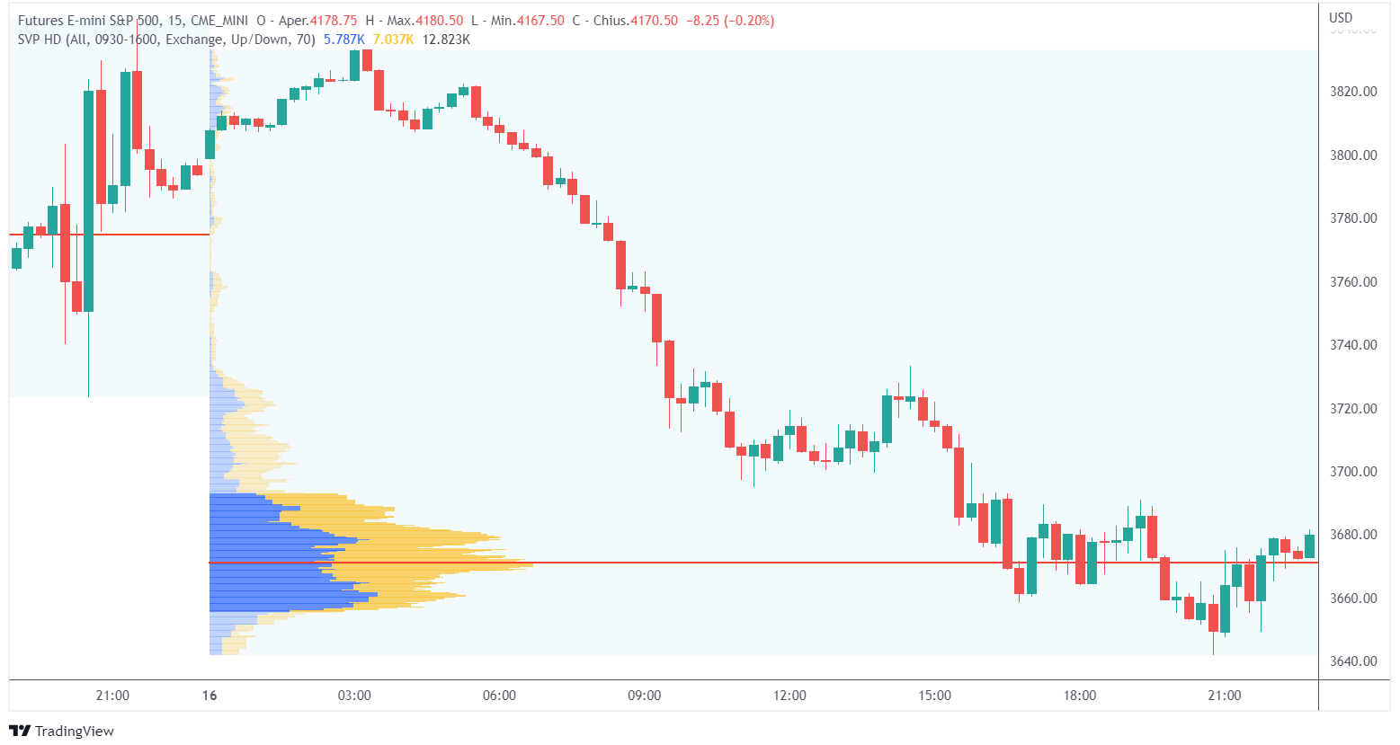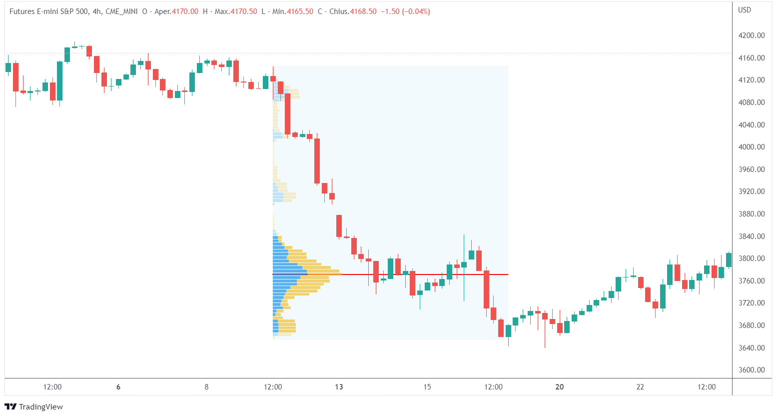 Il Visible Range Volume Profile: calcola il volume profile per tutto l’intervallo visibile del grafico.