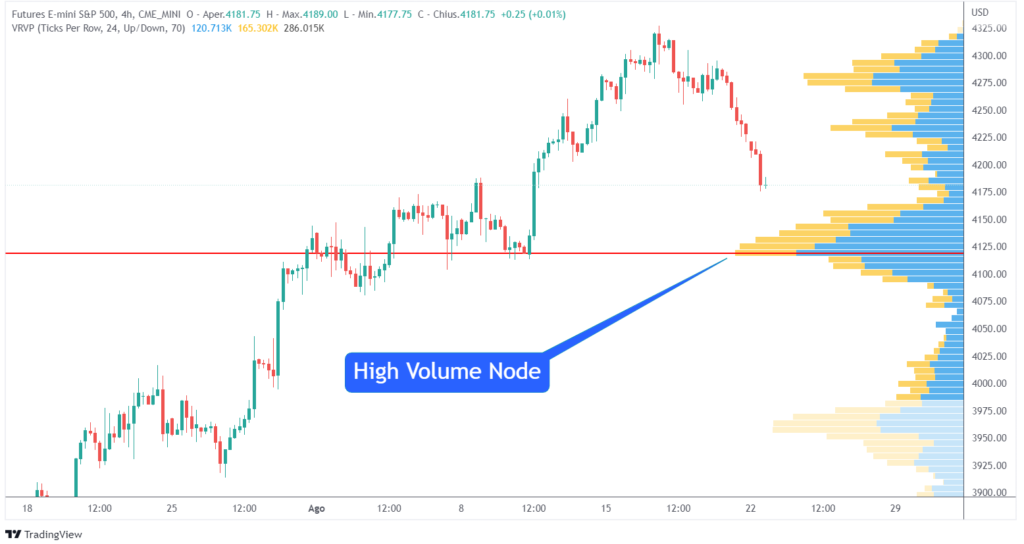 I trader cercano anche le aree in cui si sono registrati picchi di volume o high volume nodes (HVN). In questi livelli di prezzo di solito c’è una grande attività sia di acquisto che di vendita.