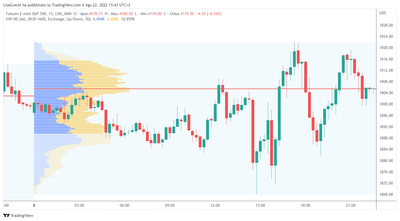 Il volume sul tempo può fornire informazioni utili ma non indica i livelli in cui c’è stato un maggiore interesse a scambiare. Il volume profile mostra le aree in cui gli scambi sono stati maggiori.