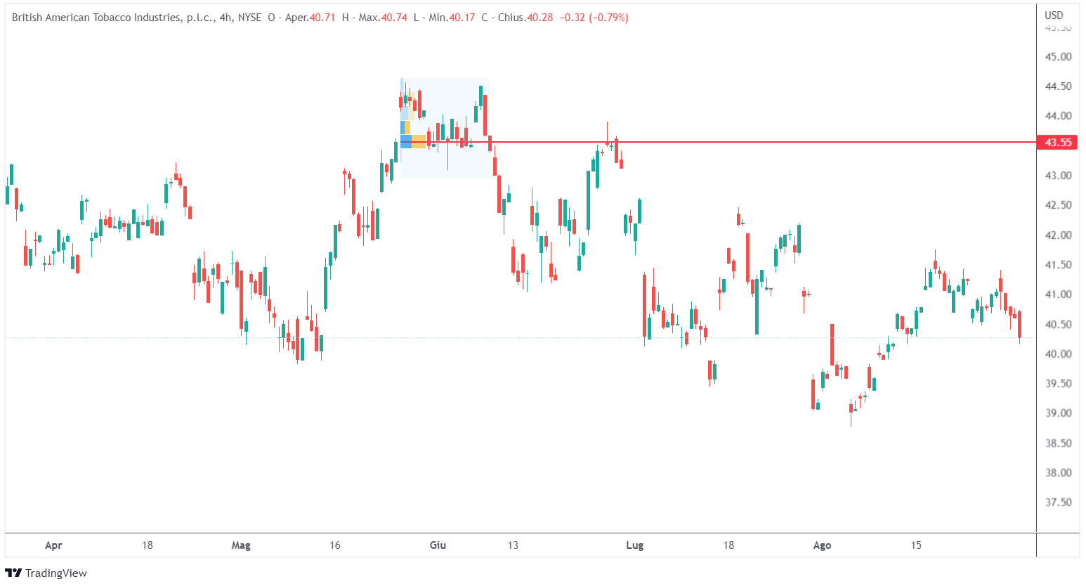 Prima della fase di distribuzione, il prezzo veniva da un trend rialzista. Successivamente, i sellers hanno preso forza spingendo il prezzo al ribasso. Al retest del POC della fase di distribuzione, i sellers sono andati a difendere le loro posizioni e il prezzo ha preso direzionalità al ribasso.