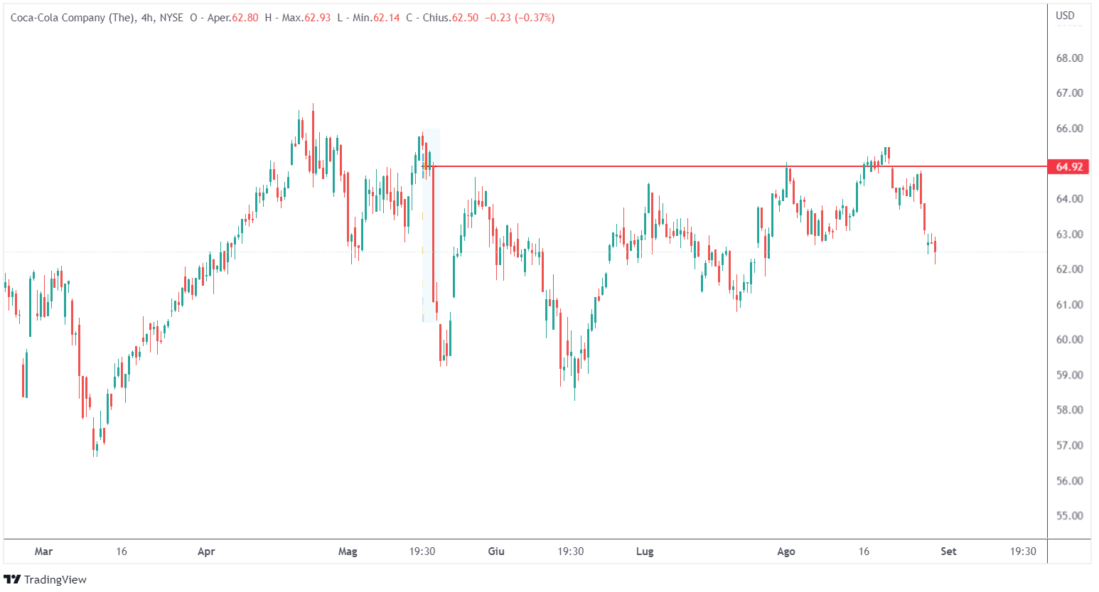 Dopo un brusco rialzo del prezzo, è iniziata una fase di distribuzione dalla quale i sellers sono usciti vincitori. Nel momento in cui è tornato sul POC della fase di distribuzione, il prezzo ha avuto una reazione. E’ proprio qui che i sellers hanno difeso le loro posizioni ribassiste che precedentemente avevano spinto il prezzo al ribasso.
