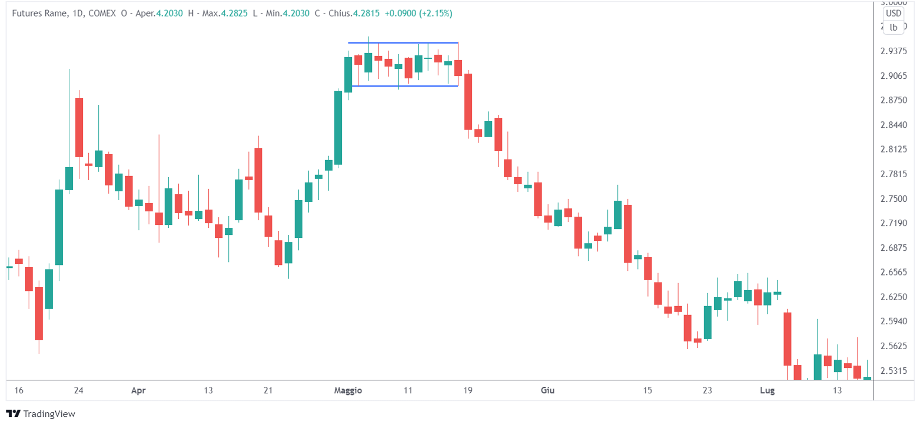 Il rettangolo è un pattern di analisi tecnica composto da linee orizzontali che mostrano un supporto e una resistenza significativi.