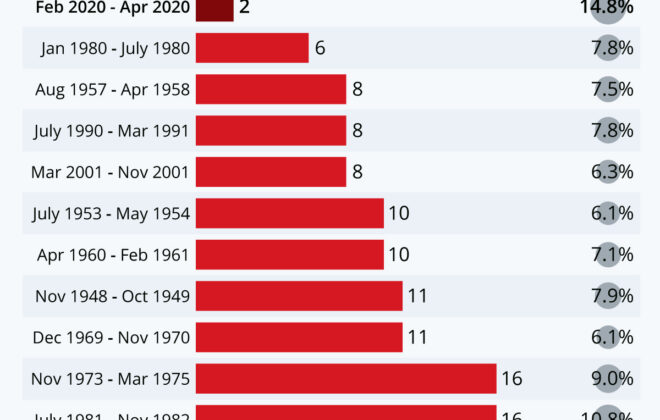 Secondo il National Bureau of Economic Research (NBER), la contrazione dell’economia causata dalla pandemia ha rappresentato la recessione più corta della storia. Secondo le convenzioni del NBER, una recessione inizia nel primo mese successivo al picco dell’attività economica e termina nel mese del successivo minimo….