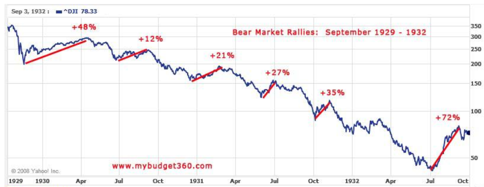 I rally di un mercato ribassista sono forti aumenti a breve termine del prezzo di un mercato che si trova in una fase di ribasso. Spesso gli investitori possono interpretare erroneamente questi rally, pensando che il mercato ribassista sia terminato. Nel gergo di Wall Street…