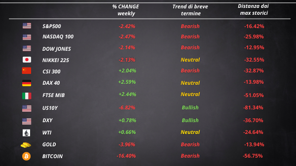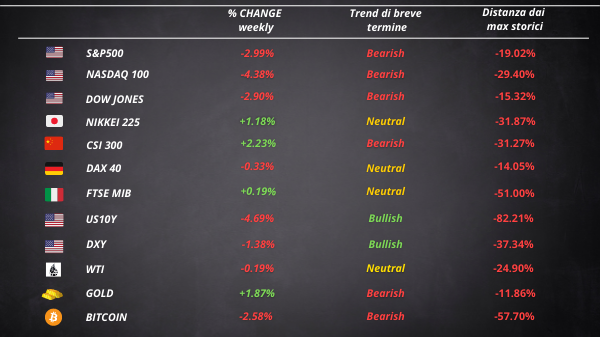 Il mercato azionario americano ha chiuso la sesta settimana consecutiva in rosso. Il rally degli indici di venerdì è riuscito a salvare l’S&P dal bear market. Infatti, l’indice delle 500 aziende degli Stati Uniti a più alta capitalizzazione era arrivato a sfiorare un drawdown del…