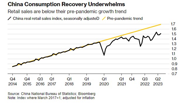 I governi locali hanno meno soldi perché fanno affidamento sulle entrate derivanti dalla vendita di case e di terreni. Nel frattempo, le esportazioni hanno registrato un calo a doppia cifra, la crescita dei redditi è rallentata e la disoccupazione è ancora piuttosto elevata, soprattutto quella giovanile. Con la fiducia in calo, la ripresa dei consumi e stata deludente. Le vendite al dettaglio sono al di sotto del trend di crescita pre-pandemia.