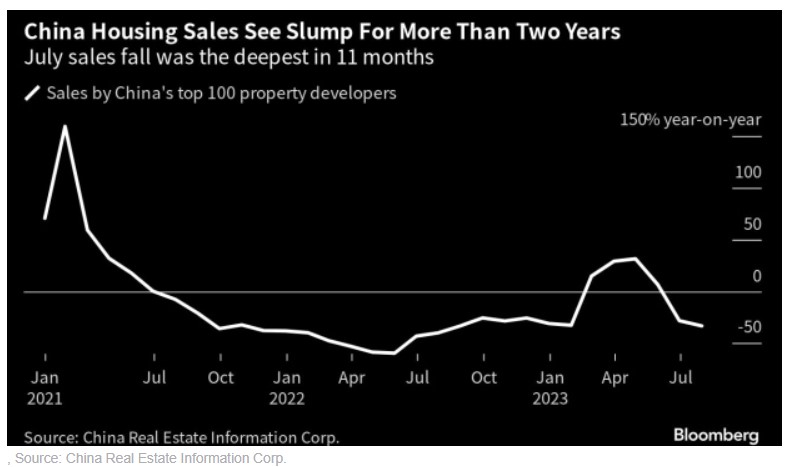 Il settore immobiliare cinese è in crisi dal 2021, dopo che Pechino ha stretto il credito ai grandi sviluppatori e ha detto alle banche di rallentare l’emissione di mutui. L’edilizia abitativa, insieme alle industrie correlate come l’acciaio, rappresenta circa il 20% del prodotto interno lordo cinese. Come risultato di queste restrizioni, le vendite di case sono crollate e gli investimenti immobiliari si sono contratti.