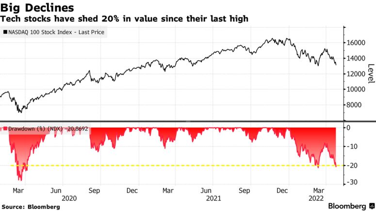 I titoli tecnologici stanno soffrendo molto. Per la seconda volta quest’anno, l’indice Nasdaq 100 ha superato un drawdown del 20% dai suoi massimi storici. Ma perché le tech stanno scendendo?