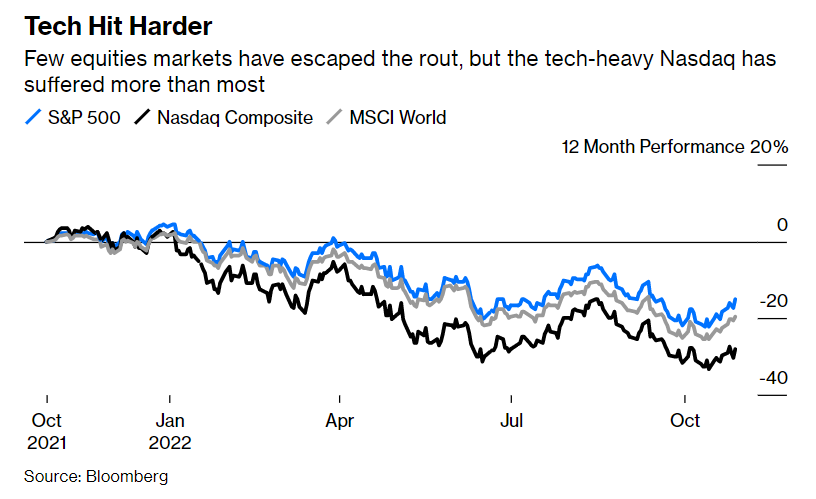 La maggior parte dei più grandi nomi della tecnologia è riuscita a recuperare un po’ di terreno dalla scorsa settimana, spinta in parte dalle prestazioni relativamente sane di Apple. Insieme, le Big Tech raccontano la storia di un industria colpita da un dollaro forte, problemi della catena di approvvigionamento, inflazione fuori controllo e crescita economica in rallentamento.