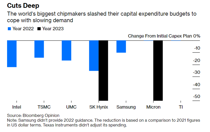 Un anno fa, il mondo era a corto di chip e i fornitori si affrettavano ad acquistare attrezzature e aumentare la produzione. Nell’ultimo mese, i produttori di chip più grandi del mondo hanno ridotto collettivamente i budget del 2022 di oltre 16 miliardi di dollari e si stanno preparando a ridurre la spesa il prossimo anno.