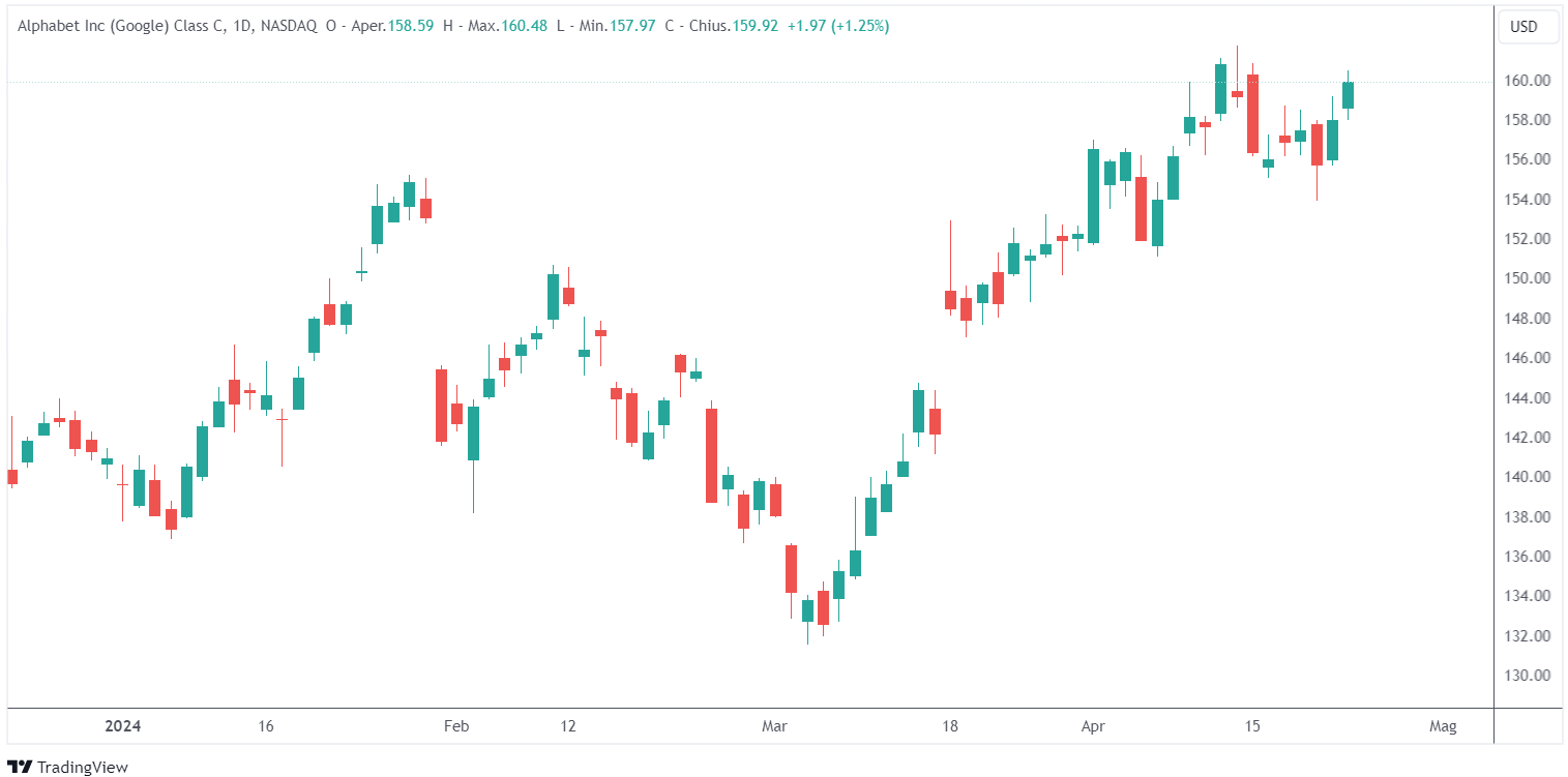 Nonostante un calo nel prezzo delle azioni a marzo, Alphabet ha mostrato un aumento del 10% nel 2023, trainato dall’ottimismo sulla sua strategia di intelligenza artificiale generativa. Tuttavia, la società madre di Google si trova ancora al di sotto di Microsoft, Apple e Nvidia nella capitalizzazione di mercato con 1,95 bilioni di dollari. Tuttavia, l’annuncio di un dividendo potrebbe contribuire ulteriormente a spingere la performance del titolo.