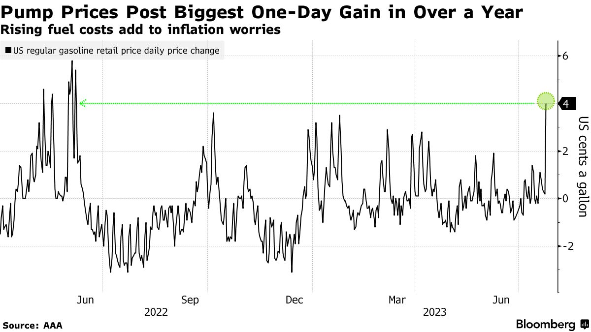 L’aumento dei prezzi della benzina rappresenta potenzialmente un grattacapo per le banche centrali, mentre stanno valutando quanto ulteriore inasprimento monetario sia necessario per riportare l’inflazione al loro obiettivo.