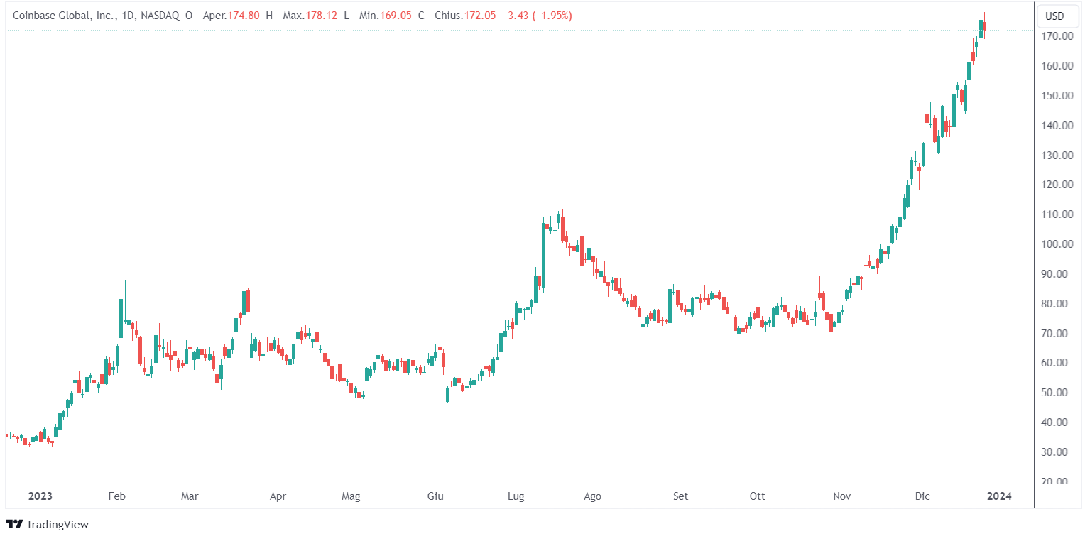 I minatori di Bitcoin Marathon Digital Holdings e Riot Platforms, il principale exchange di criptovalute statunitense Coinbase e la società di software che investe in Bitcoin MicroStrategy sono tutti balzati con la ripresa del mercato delle criptovalute. Coinbase ha guadagnato quasi il 400%, resistendo a una causa della Securities and Exchange Commission per aver presumibilmente gestito una piattaforma non registrata.